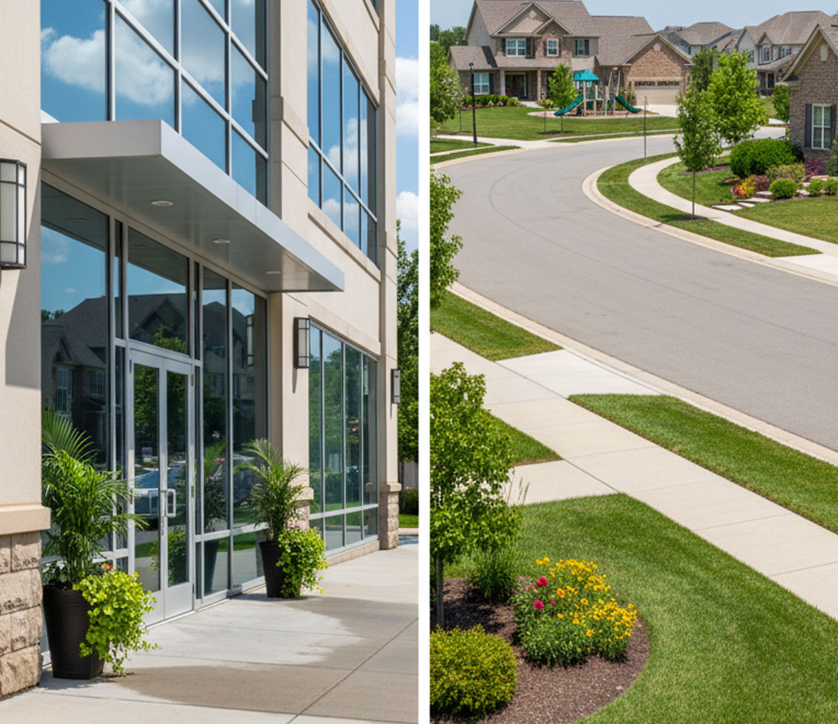 Post-construction cleaning for construction companies (construction debris removal, deep exterior cleaning). Cleaning of storefronts, condominiums, and parking lots.
